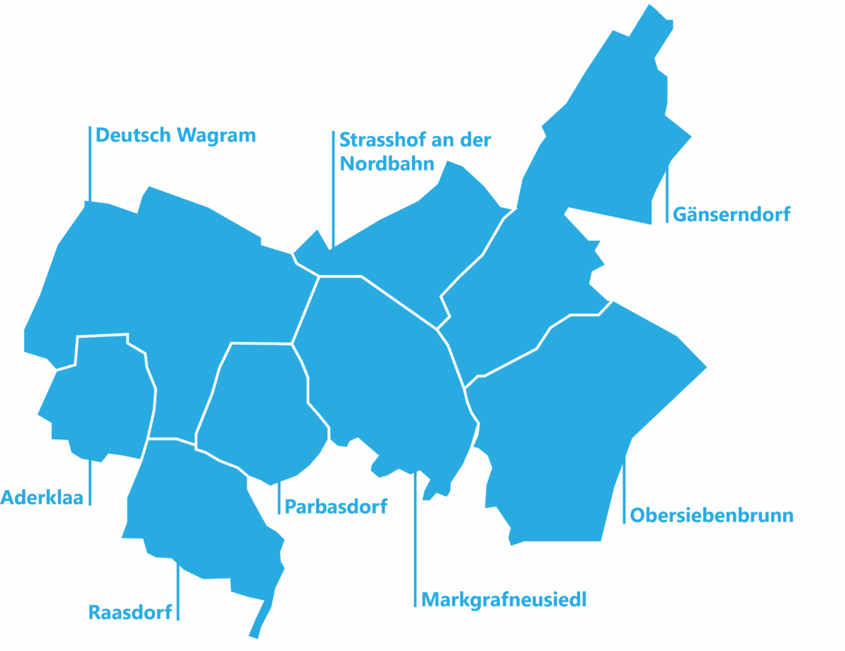 Acht Gemeinden des Marchfeldes haben sich zur bedarfsorientierteren Vermarktung ihrer Betriebs- und Industriegrundstücke zum „Gemeindeverband Wirtschaftskooperation Marchfeld“ zusammengeschlossen. Obmann dieses Verbandes ist Bürgermeister Bernhard WOLFRAM aus Aderklaa, sein Stellvertreter ist Bürgermeister Ludwig Deltl aus Strasshof.